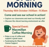 Open Morning. Thursday 16th October. 9am-11.30am