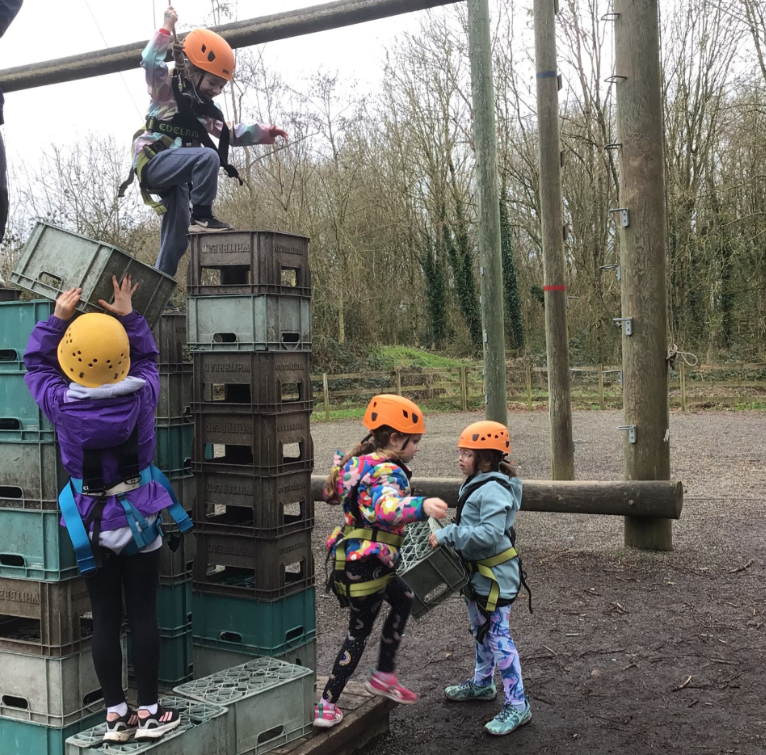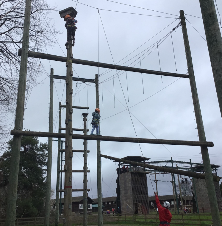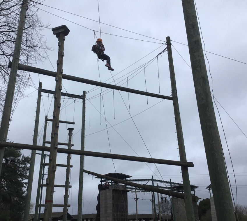 Once everything was tidy, it was time for the first activities of the day. Group 1 headed off to the thrilling high rope course, where they bravely climbed high above the ground and balanced along tricky obstacles. It took courage, concentration and teamwork, but everyone cheered each other on and felt very proud when they completed the challenge.