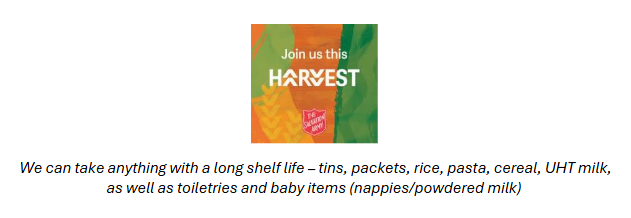 Harvest Festival: Thursday at 2:30pm in the village hall (everyone welcome)