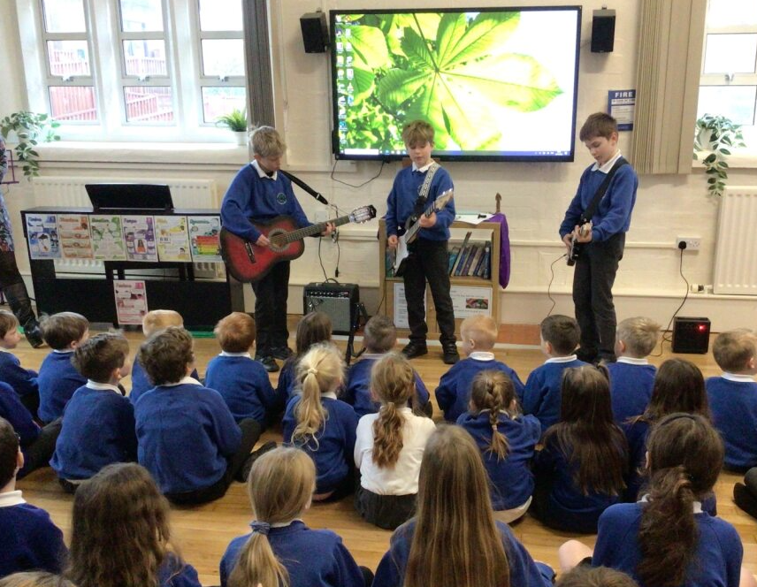 Another brilliant example of pupil leadership came from three boys in Merlins, who asked if they could use some lunchtimes to form a band and perform during today’s collective worship. They were fantastic and the whole school thoroughly enjoyed their performance. We are already looking forward to their next gig!